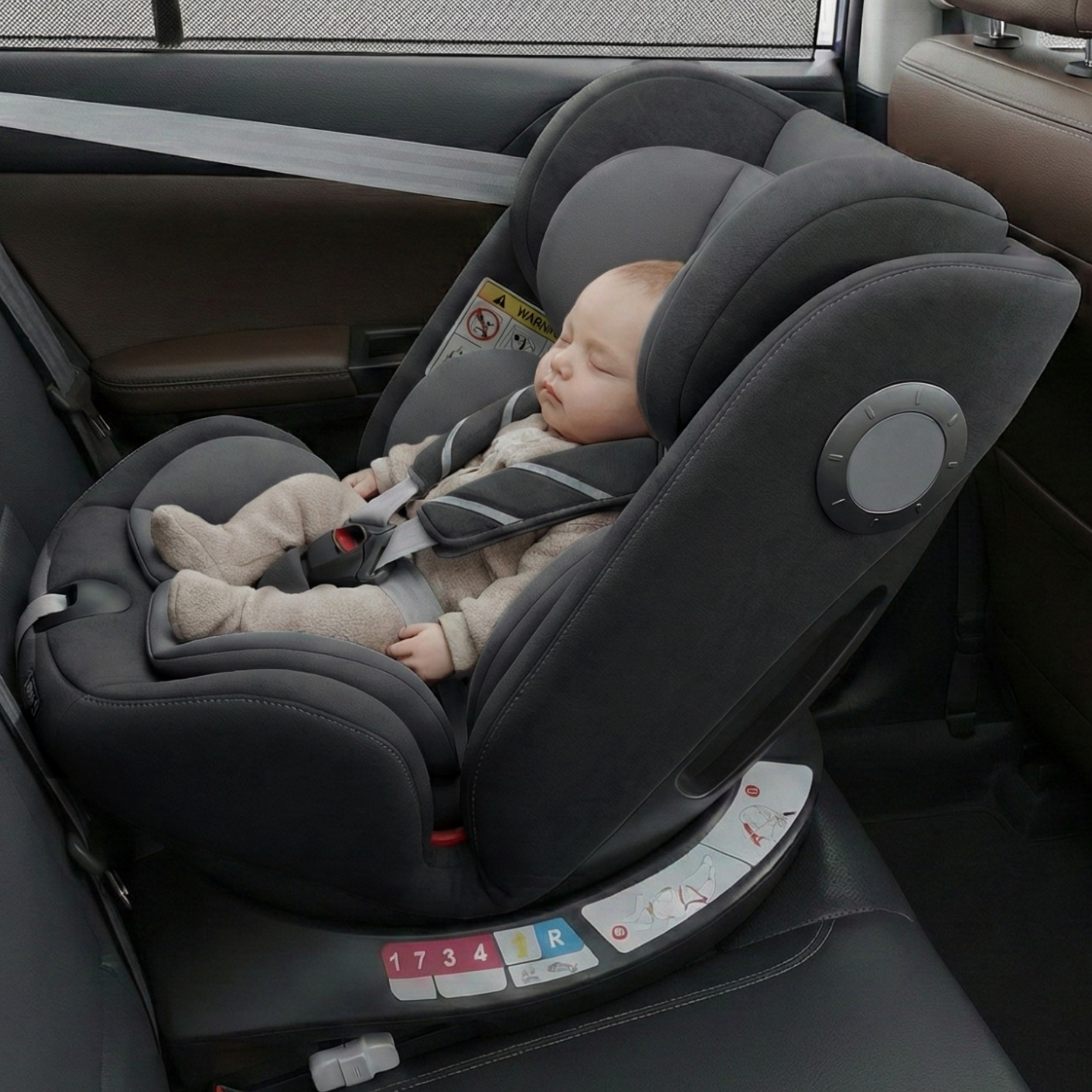 Babykins Convertible 360° Rotation Isofix Car Seat for Baby, 0-12 Years | Car Seat for Child & Kids | 4 Recline Positions | ECE R44/04 Certified | 5-Point Harness (Black Grey)