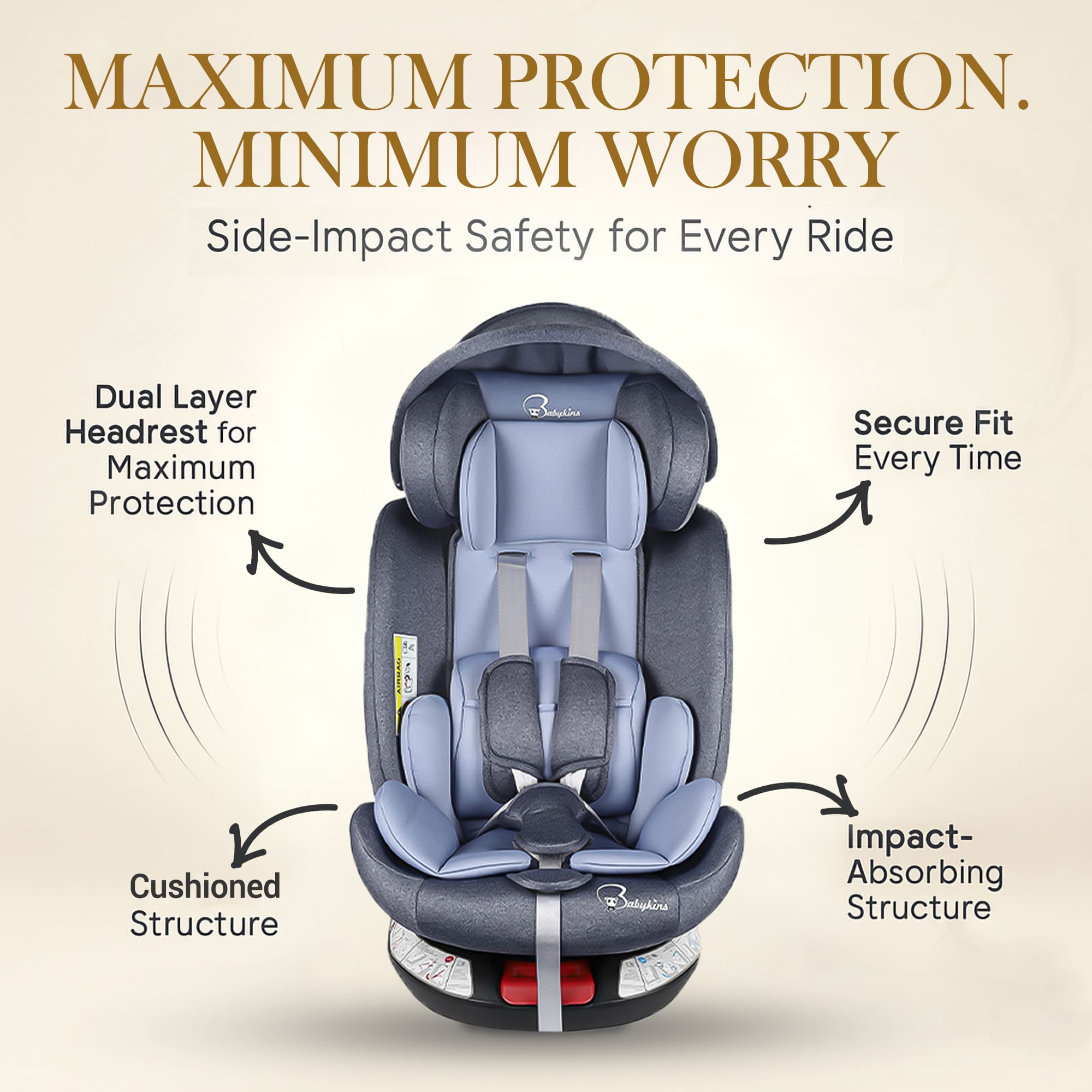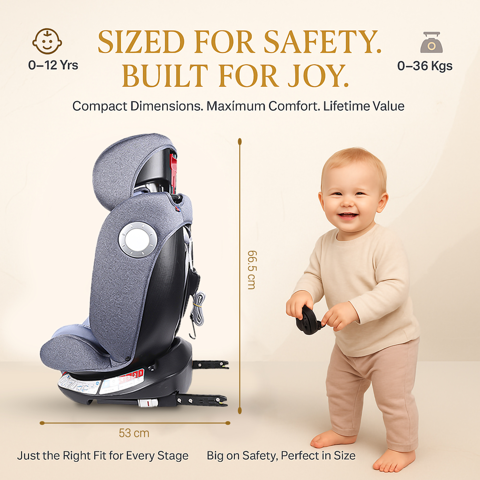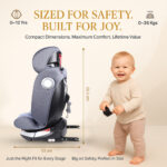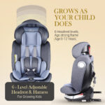 Convertible Isofix Car Seat for Baby, 0-12 Years | Car Seat for Child & Kids | 360° Rotation & 4 Recline Positions | ECE R44/04 Certified | 5-Point Harness (Black Grey)